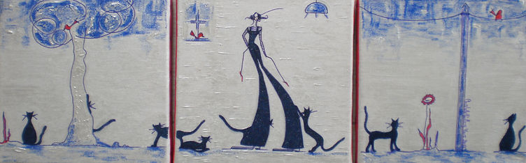 Peinture acrylique, crayons de couleur, feutres.